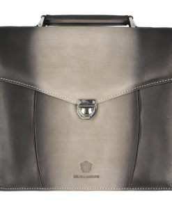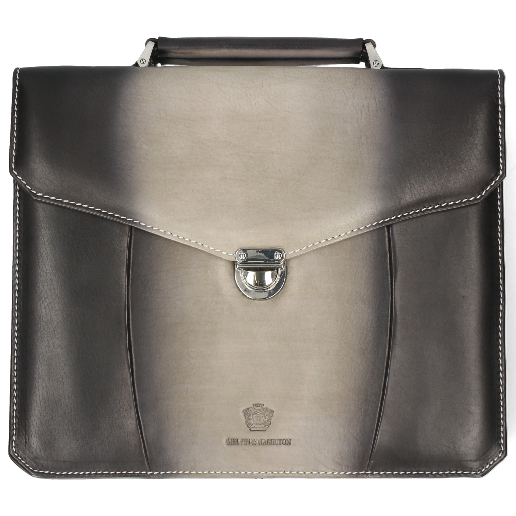 Looking for a business bag size medium in which you can carry all your papers, laptop and other documents? The Kingston briefcase bag designed by Melvin& Hamilton is the perfect choice! This grey leather bag is very practical. It’s a quality piece of leather goods and a great investment thanks to its vegetable tanned leather, its durability and its classic style. Closed by a leather handle and a metallic lock, your electronic devices and belongings will be perfectly safe. Whether you carry it by the handle or under your arm, it’s the briefcase of a lifetime, and will stand up to all your business trips and journeys around town!