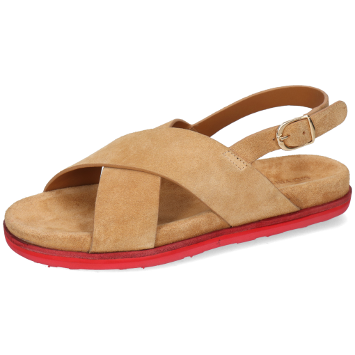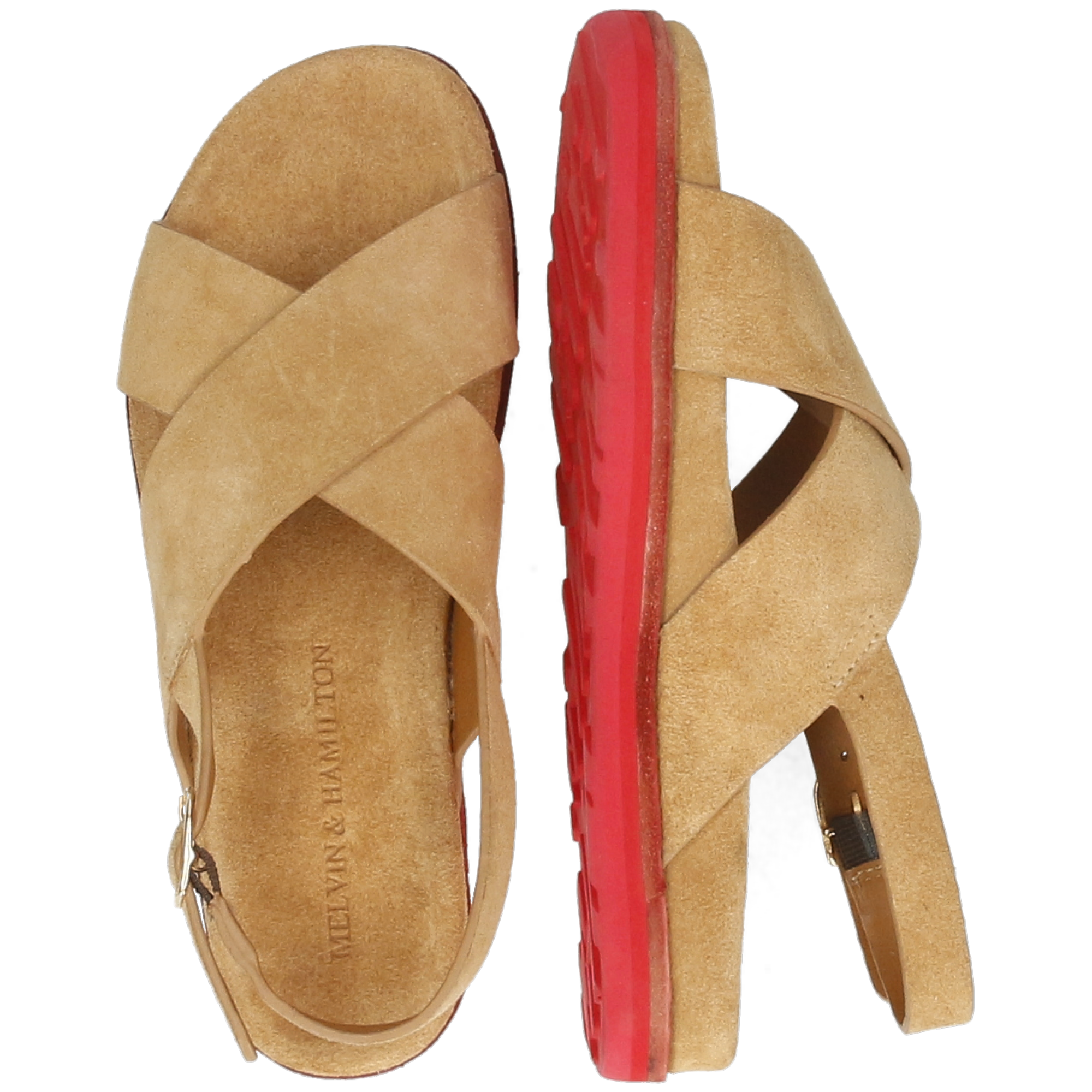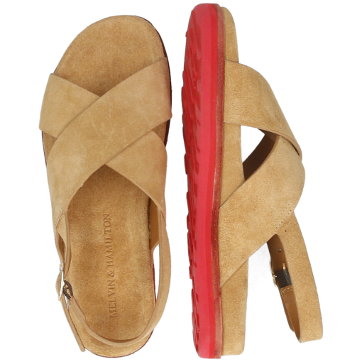 Melvin& Hamilton presents its spring/summer collection of women’s sandals. Available as flats or wedges, sandals are a must-have for your summer shoe cupboard. Discover the features of our Siri 3 leather model. Spend the whole day in comfort, that’s what these flat heels sandals in brown cow leather, suede leather promise you! Thanks to their red rubber sole and its square toe design, you won’t want to be without them.